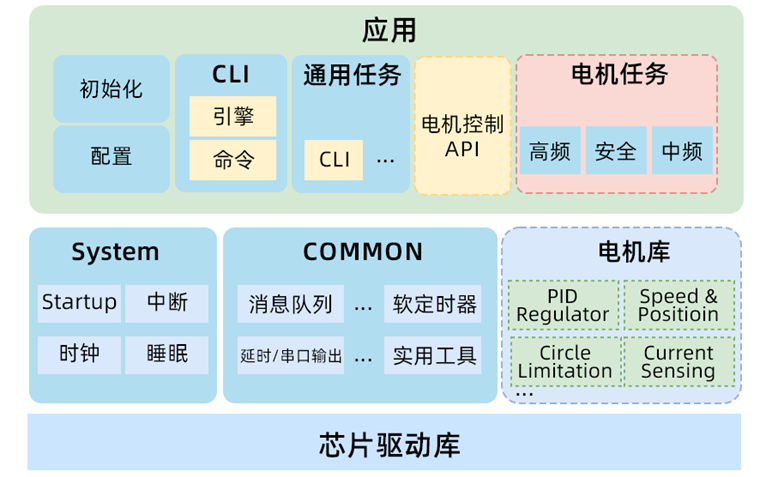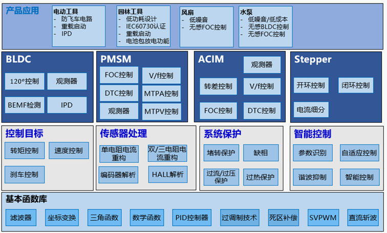 4.分層設(shè)計(jì)的軟件架構(gòu),豐富且成熟的電機(jī)算法庫,降低開發(fā)設(shè)計(jì)難度及技術(shù)門檻。