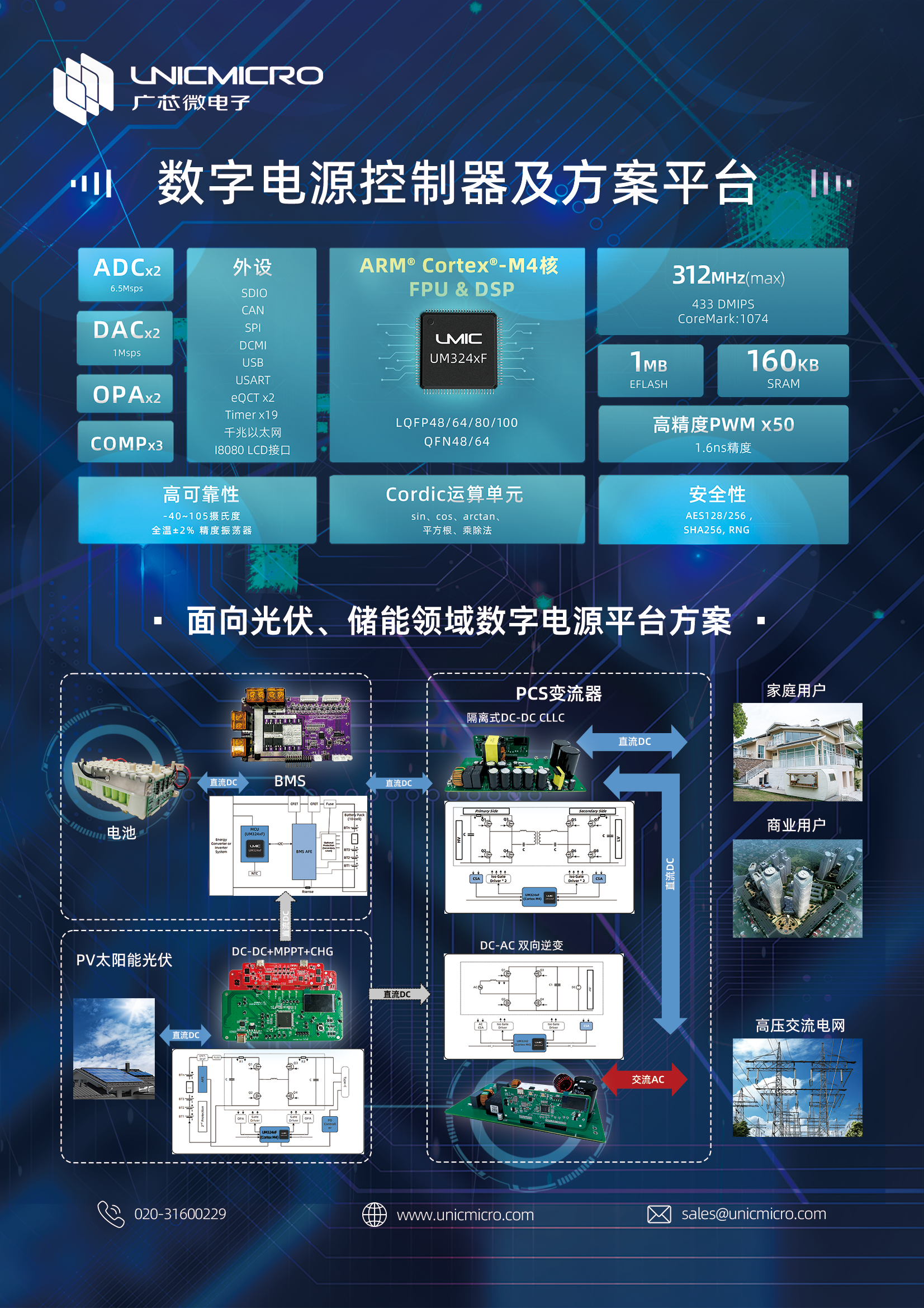 1. DC-DC BUCK-BOOST方案,將太陽(yáng)能光伏的直流電通過(guò)升降壓轉(zhuǎn)為適用于不同場(chǎng)景的直流電,該方案完全數(shù)字化控制實(shí)現(xiàn)多通道數(shù)字電源升降壓控制,支持單向,雙向模式以及MPPT最大功率功率點(diǎn)跟蹤。