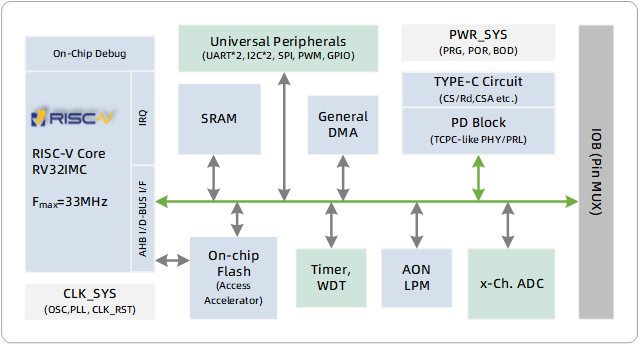 本次展會展示的數(shù)字電源專用芯片包括PD Plus控制器UM350系列和高性能主控處理器UM324xF系列,PD Plus控制器UM3506內(nèi)部采用TCPM/TCPC的分層架構(gòu)來實現(xiàn)完成的PD/TYPE-C系統(tǒng)功能。它集成了原生的TCPC-like的模擬前端,32位創(chuàng)新型的RISC-V指令集內(nèi)核,片上的大容量Flash/SRAM,增強(qiáng)型外設(shè)及完備的系統(tǒng)資源??蛻艨梢栽谝粋€差異化的PD Plus系統(tǒng)中,靈活地管理電源策略和定制化地擴(kuò)展控制及交互等功能。