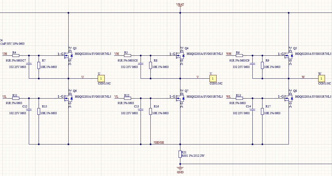 注:C24/C25/C26濾波電容根據(jù)電機(jī)屬性及實(shí)際的測(cè)試信號(hào)進(jìn)行調(diào)整,建議100pf或1uf