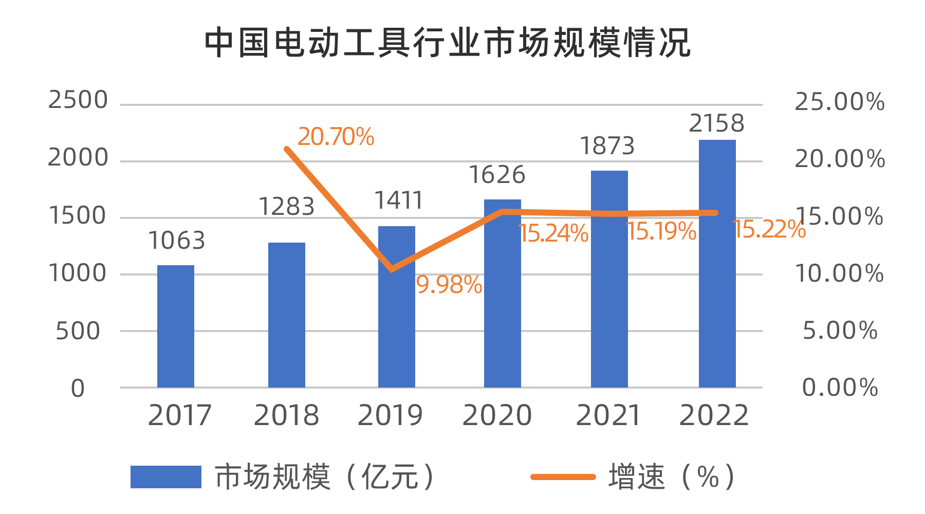 隨著近年來我國(guó)房地產(chǎn)及制造業(yè)的快速發(fā)展,使得市場(chǎng)對(duì)電動(dòng)工具的需求不斷增加,推動(dòng)了我國(guó)電動(dòng)工具市場(chǎng)規(guī)模的增長(zhǎng)。據(jù)資料顯示,2021年我國(guó)電動(dòng)工具行業(yè)市場(chǎng)規(guī)模達(dá)1873億元,同比增長(zhǎng)15.19%,預(yù)計(jì)到2022年市場(chǎng)規(guī)模將增長(zhǎng)至2158億元,目前中國(guó)已成為全球電動(dòng)工具生產(chǎn)制造大國(guó),2021年國(guó)內(nèi)電動(dòng)手提式工具產(chǎn)量達(dá)2.7億臺(tái),同比增長(zhǎng)22.87%。