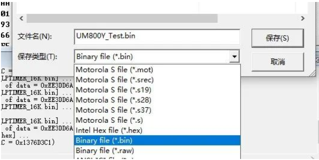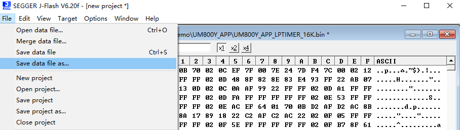 打包成功后。點(diǎn)擊軟件左上角File,選擇Save data file as..將打包好的程序進(jìn)行保存,保存的格式為bin或者h(yuǎn)ex。