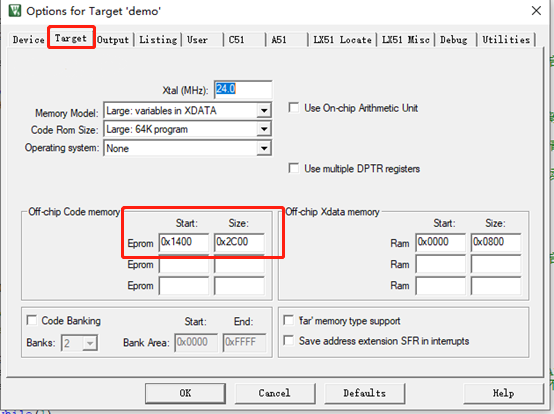 (1)需要在Target選項(xiàng)卡里設(shè)置用戶應(yīng)用APP程序的起始地址與大小,如: