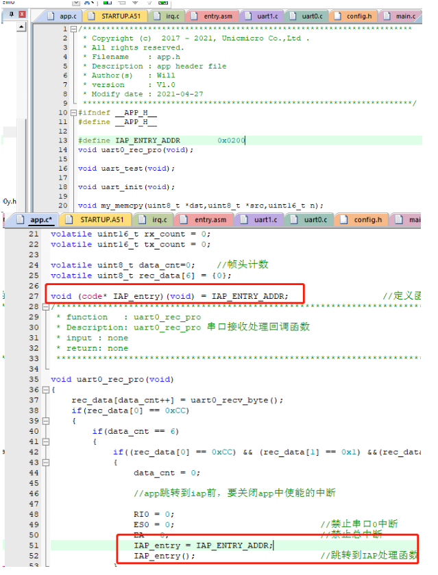 圖8 app程序中設(shè)置IAP處理函數(shù)跳轉(zhuǎn)