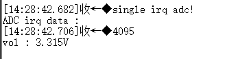 ⑥之后會(huì)運(yùn)行用戶的程序。(可以通過(guò)串口工具打印信息看到,通過(guò)IAP升級(jí)更新已將原來(lái)打包時(shí)的Lptimer應(yīng)用程序更換為ADC功能應(yīng)用程序。)