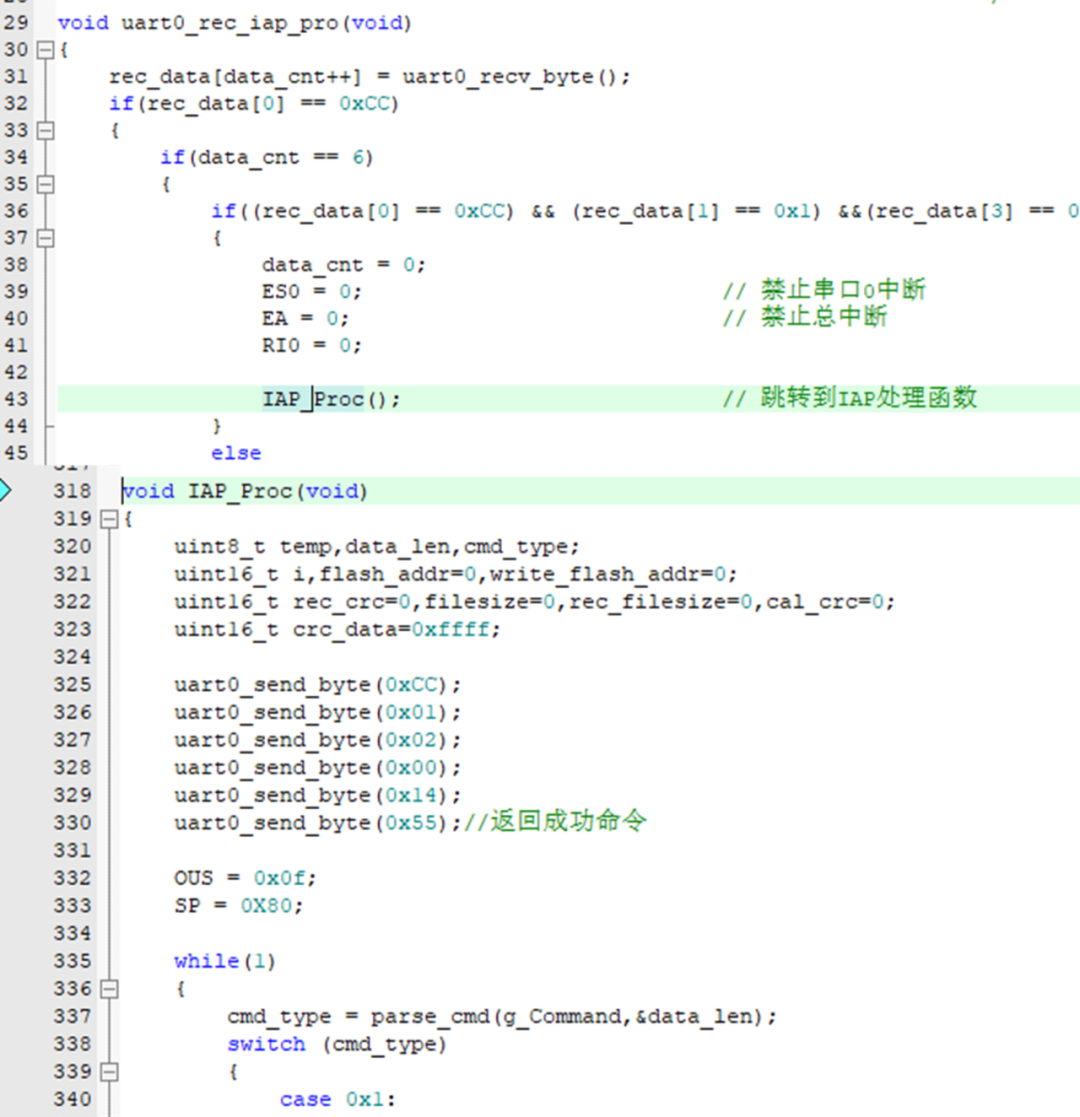 AP源碼主要功能是當(dāng)UART收到上位機(jī)的請(qǐng)求更新幀時(shí),執(zhí)行IAP_Proc()函數(shù),實(shí)現(xiàn)應(yīng)用程序的更新下載。